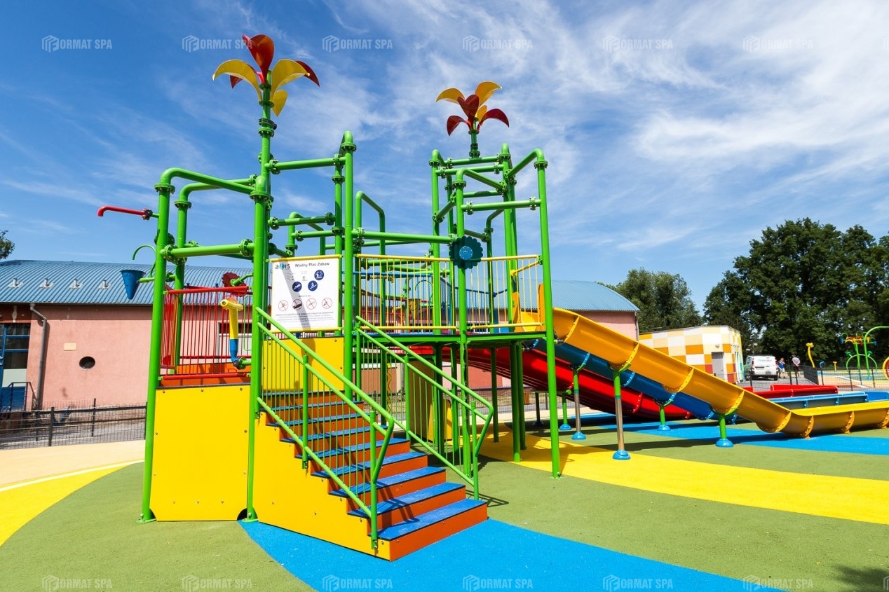 Zjeżdżalnie na wodnym placu zabaw Lubań