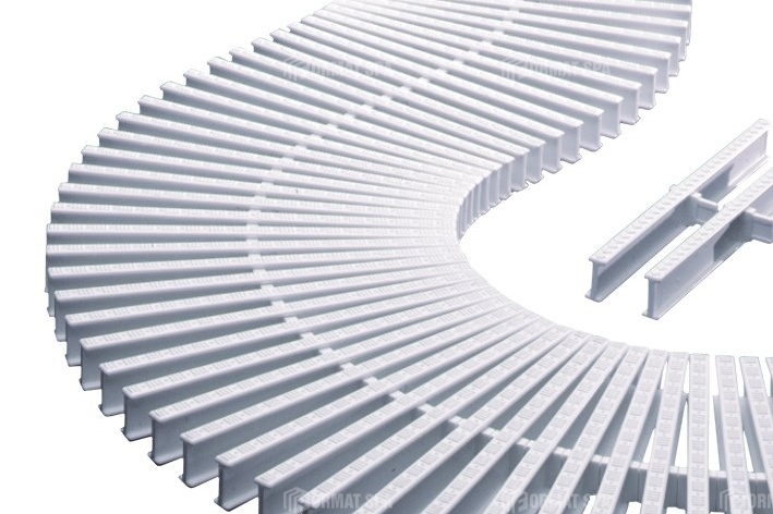Jeden z najpopularniejszych modeli kratki do rynny przelewowej basenu. Model Łukowy ECO to kratka wykonana z białego PP. Pojedyncze szczeble łączone są na wcisk w środkowym punkcie dzięki temu kratka może być stosowana przy basenach o owalnym kształcie. Kratka dostępna jest w kilku długościach oraz wysokościach. Na jeden metr bieżący wchodzi 45szczebli.