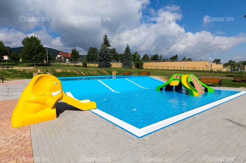 W ostatnich dniach ukończyliśmy wszystkie prace związane z budową brodzika dla dzieci.Inwestycja polegała na budowie dwóch niecek o różnych głębokościach połączonych ślizgiem.