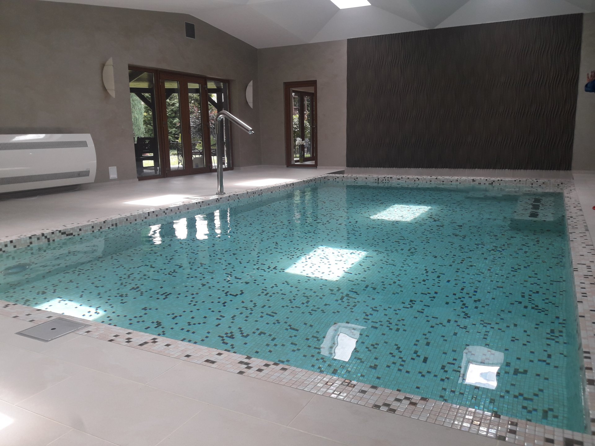 Kolejna inwestycja zakończona tym razem jest to basen prywatny k.Wrocławia.Niecka żelbetowa, wyłożona mozaiką szklaną. Stacja uzdatniania wody na aktywnym tlenie.