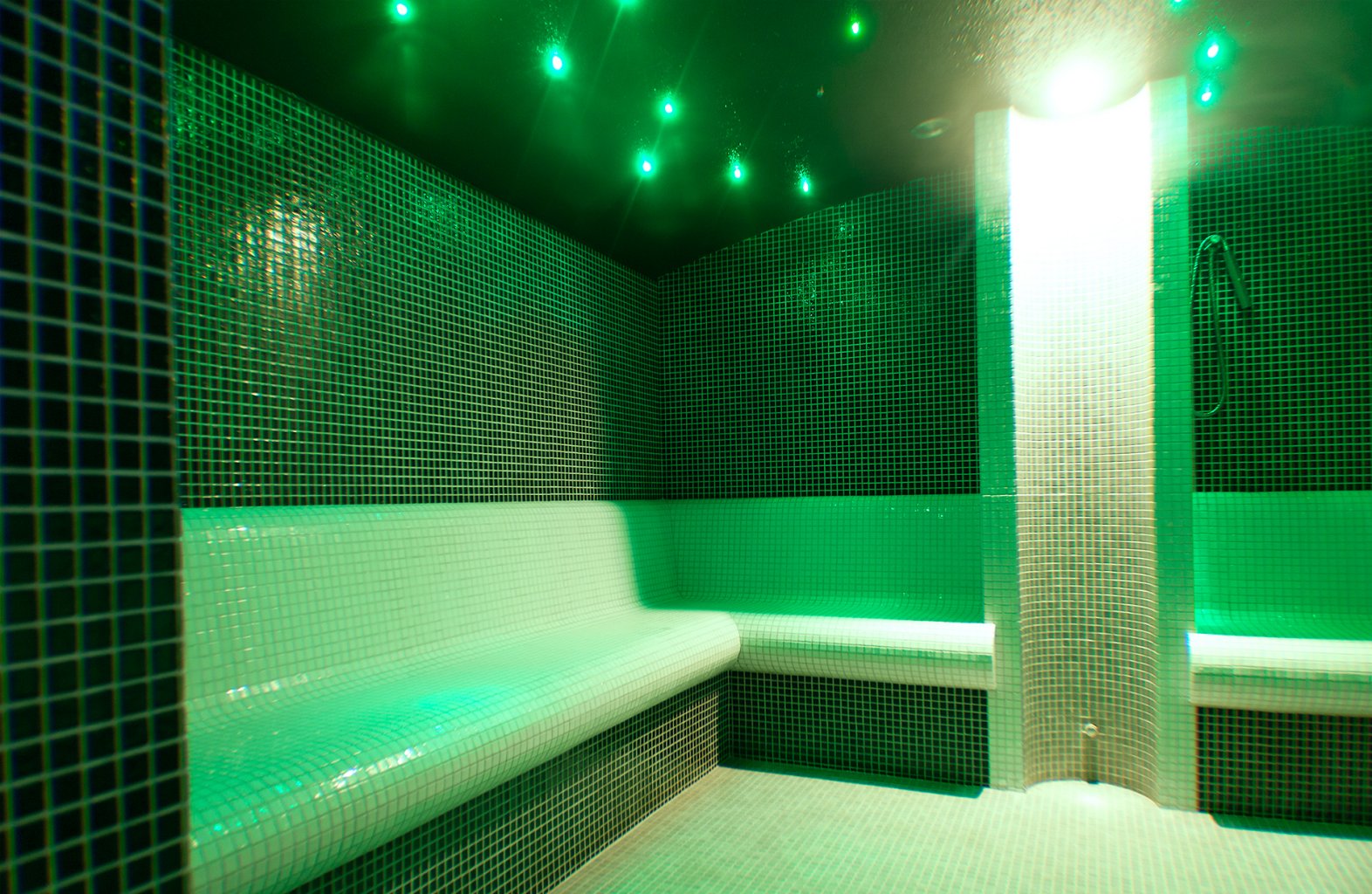 Wykonaliśmy strefę SPA & Wellness w Pałacu Staniszów koło Jeleniej Góry a w niej miedzy innymi łaźnię parową. Kabina łaźni została wykonana z materiałów paro i termo izolacyjnych a następnie wykończona mozaiką szklaną. Sufit z systemem koloroterapii wykończony został tynkiem strukturalnym.